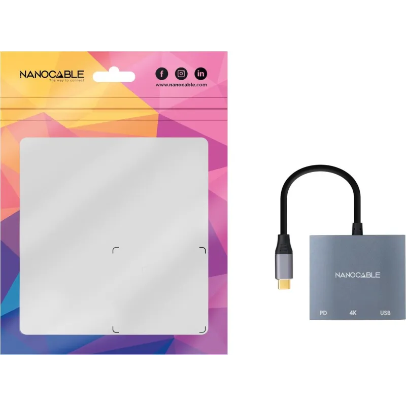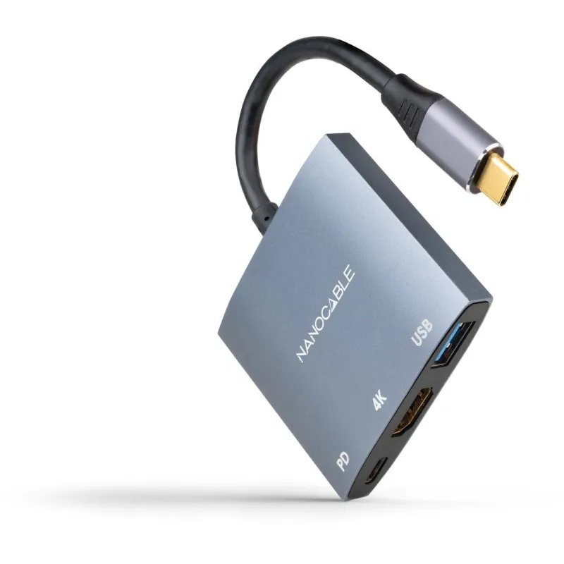 Tu nuevo ordenador se expandirá gracias a nuestro conversor Nanocable. Amplía las entradas de tu dispositivo, a través de un solo puerto USB-C tendrás un puerto HDMI, un puerto USB-A 3.0 y otro USB-C de carga. ¡Suma y sigue!