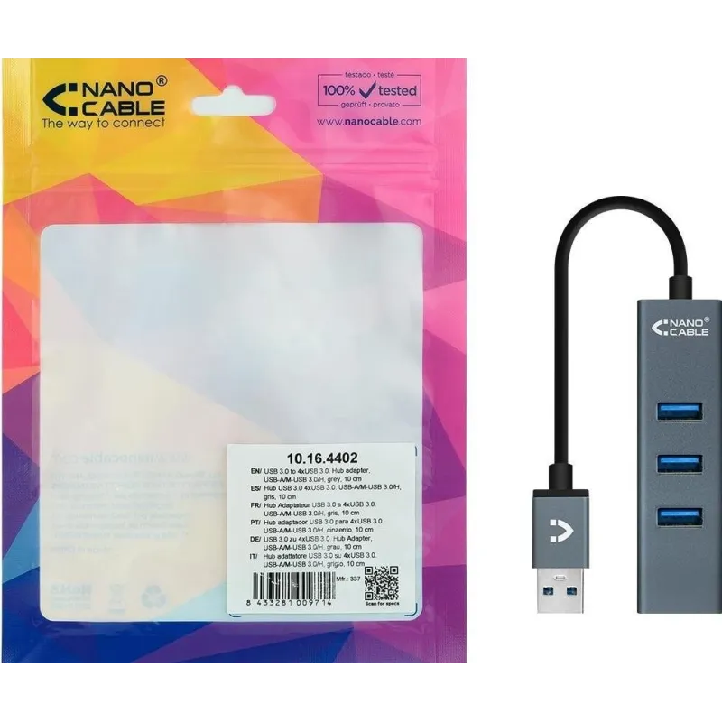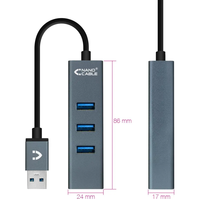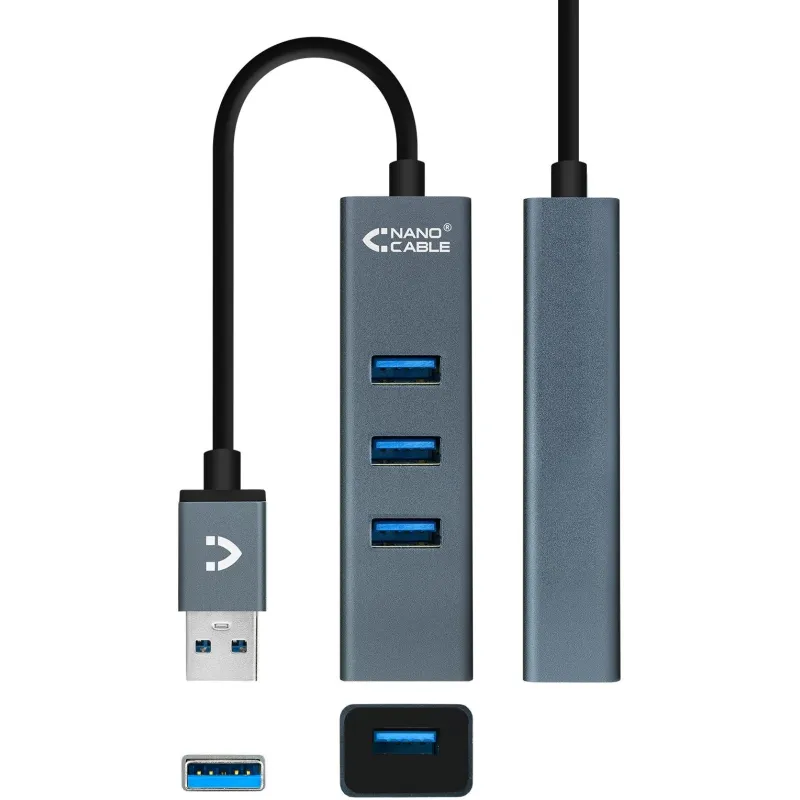 Nanocable 10.16.4402 HUB USB-A 3.0 a USB-A 3.0 4 Puertos 10 cm Gris