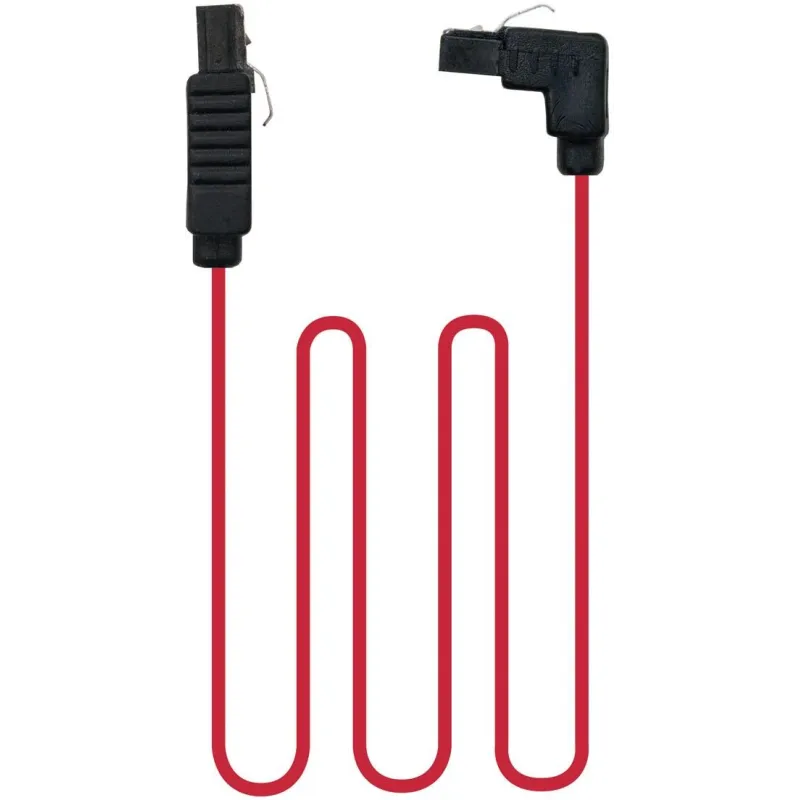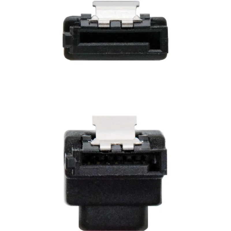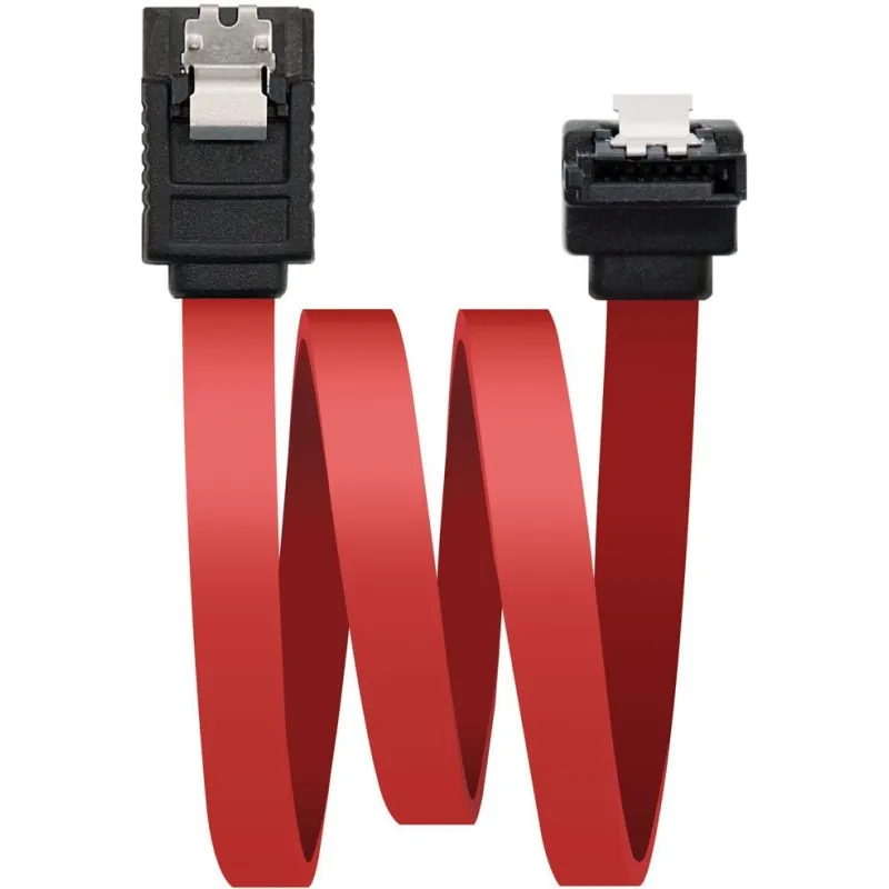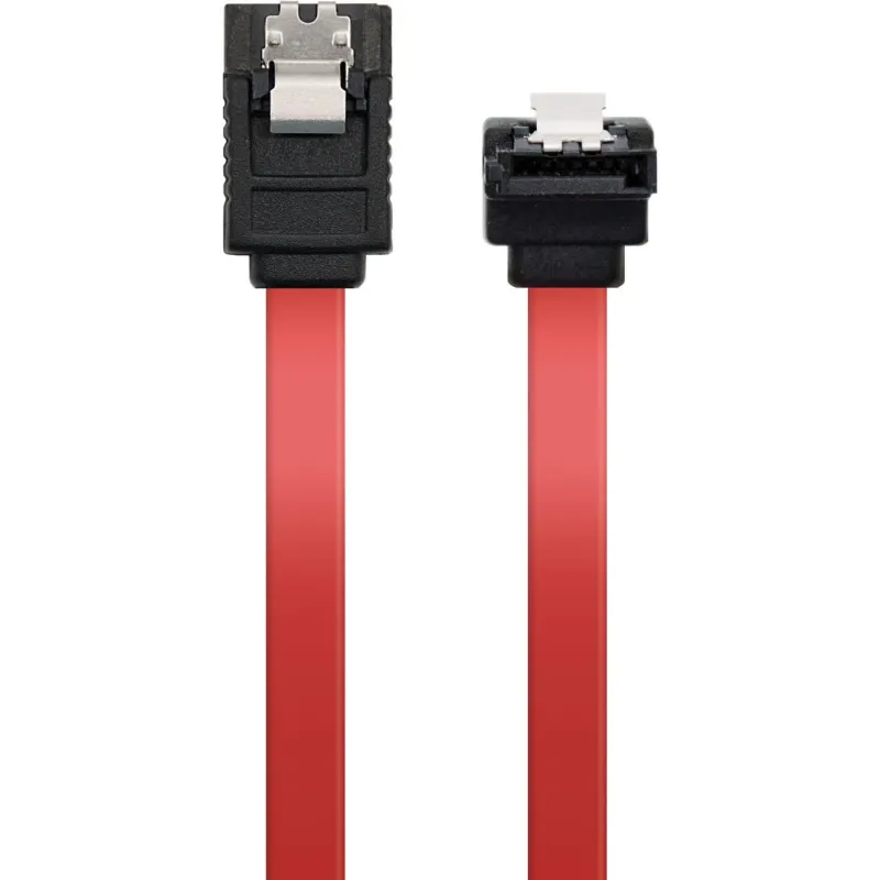 - Cable SATA datos con anclajes para una conexión segura y acodado en un extremo para disco duro u otro dispositivo con interfaz SATA