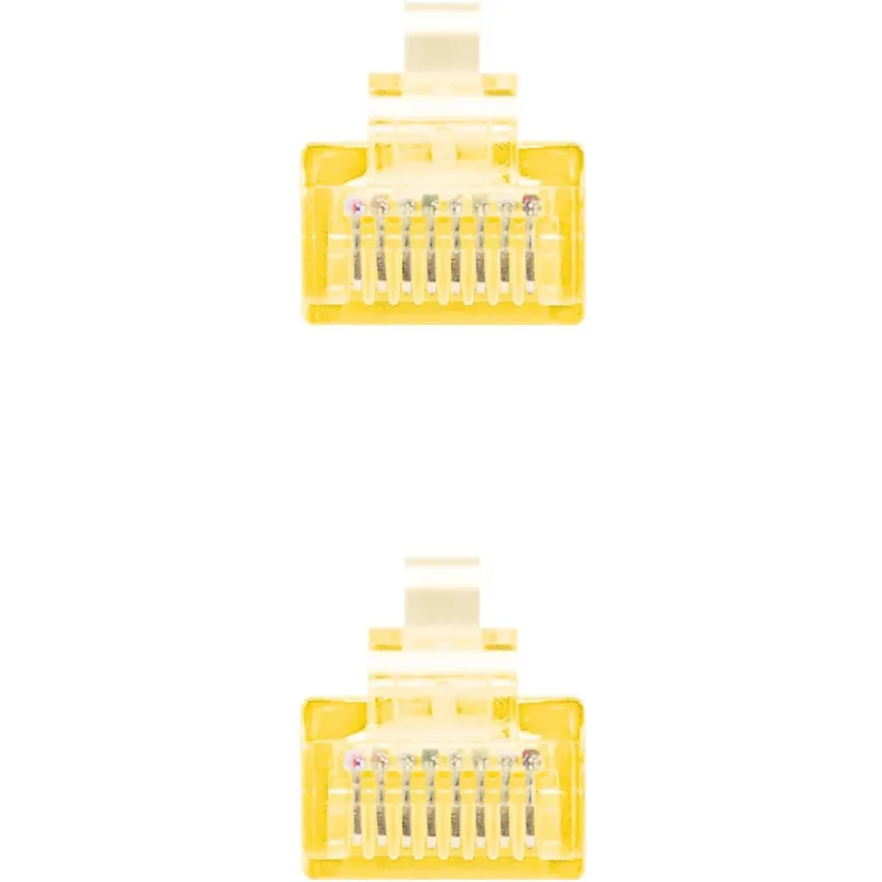UNA CONEXIÓN SÓLIDA PARA UN MUNDO INTERCONECTADO: Los conectores RJ-45 macho en ambos extremos del cable están diseñados para un ajuste perfecto, proporcionando una conexión estable que resiste las demandas de un entorno de red intensivo. La robustez de estos conectores se ve reforzada por un blindaje U/UTP, que salvaguarda la integridad de los datos transmitidos.
