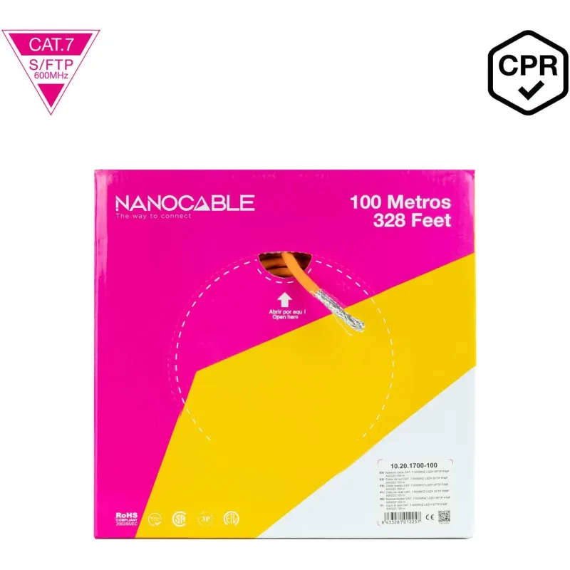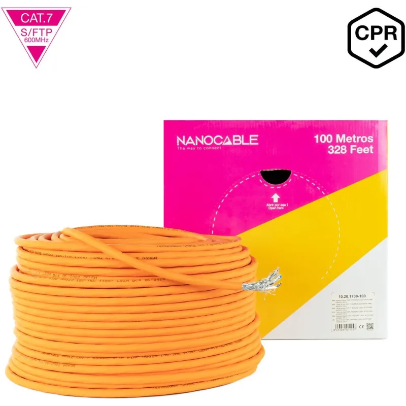 Nanocable 10.20.1700-100 Bobina Cable de Red Cat.7 SFTP PIMF AWG23 100m Naranja