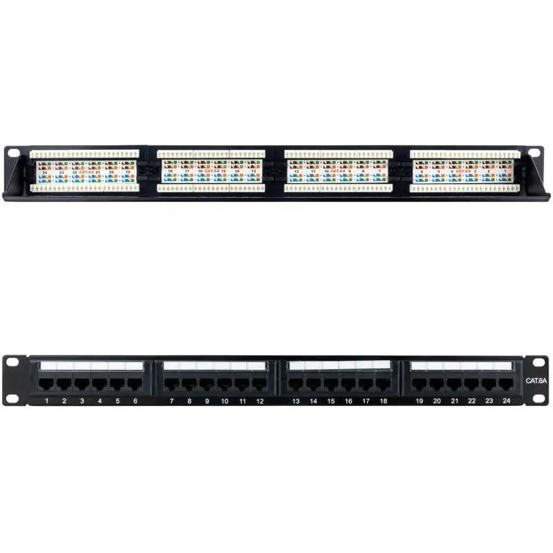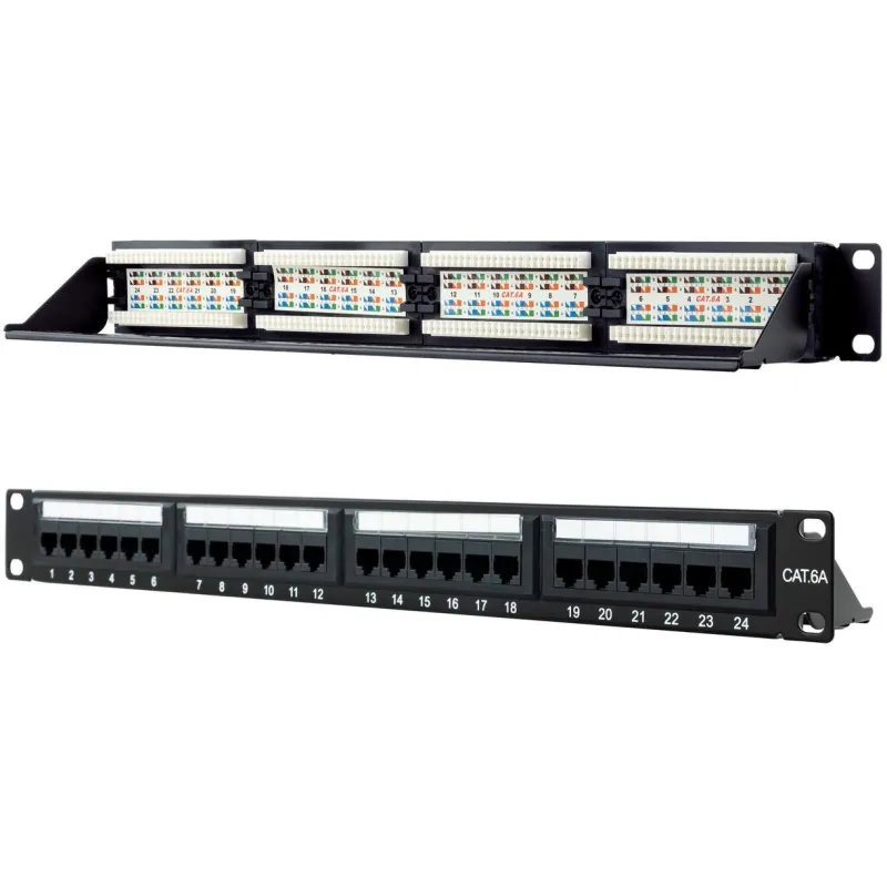 Panel de Parcheo de 24 Puertos para Conexión RJ45 Cat.6A UTP