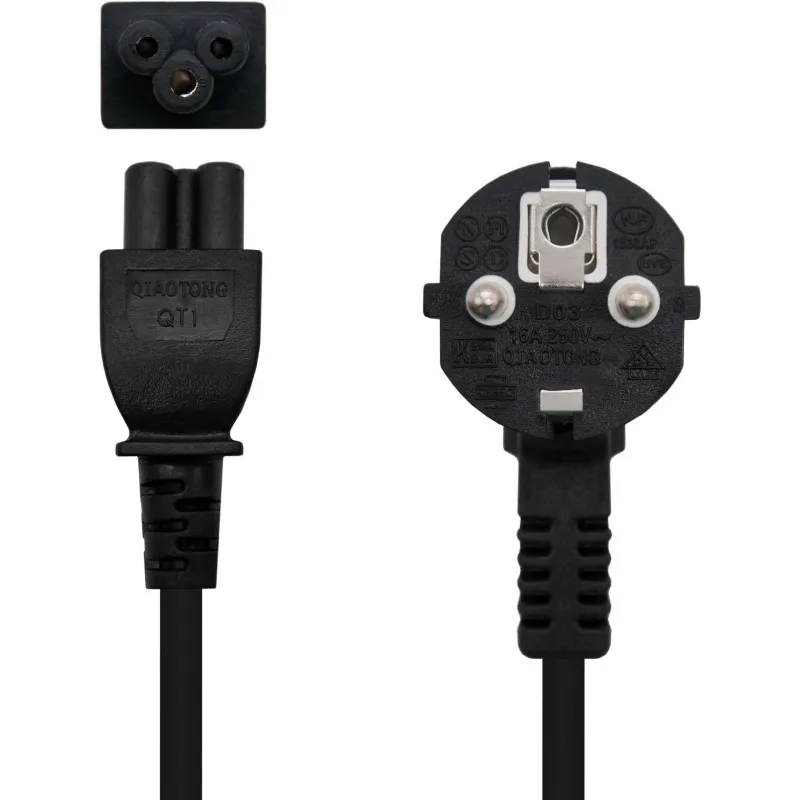 Cable alimentación trébol para cargador portatiles. Fabricado con conductor 100% cobre de AWG18 para dispositivo con consumo inferior a 1500W.