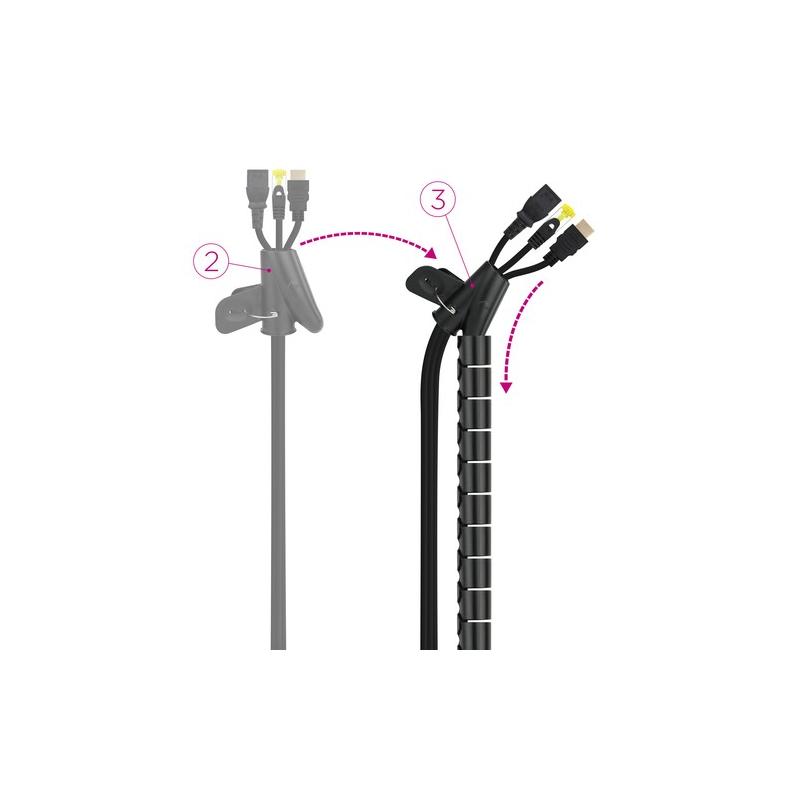 EL ORGANIZADOR DE CABLES ES PERFECTO para recoger los cables de manera práctica y sencilla en cualquier entorno. Gracias a su composición flexible y resistente de 2 metro de longitud y un diámetro de 25 mm; otorga una fácil y rápida instalación, dejando como resultado los cables ordenados y disimulados en su interior.