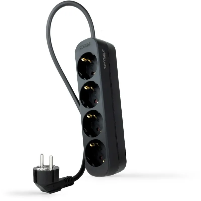 Nanocable 10.37.0004-NS-BK Regleta de Enchufes con 4 Tomas Tipo F 1.4M Negro