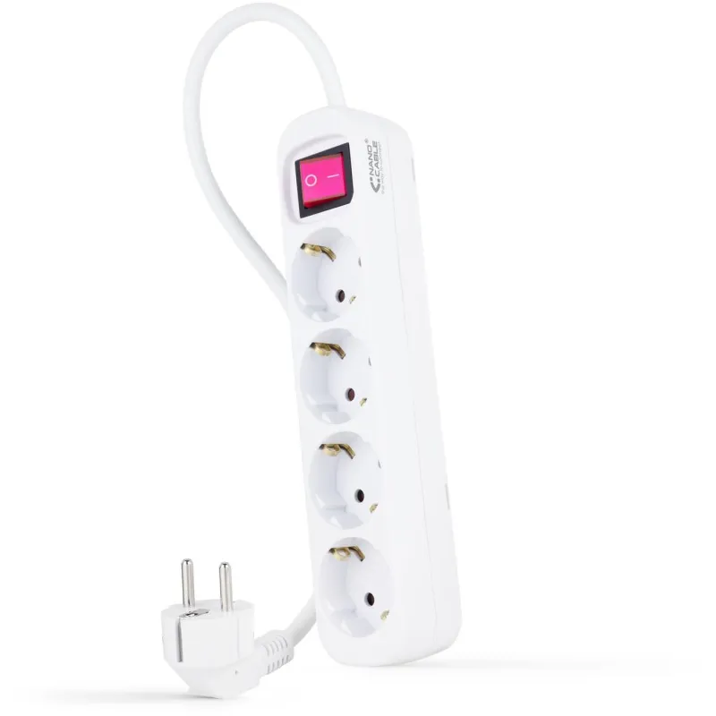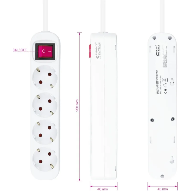 Nanocable 10.37.0004 Regleta de Enchufes de 4 Tomas con Interruptor 1.4M Blanca