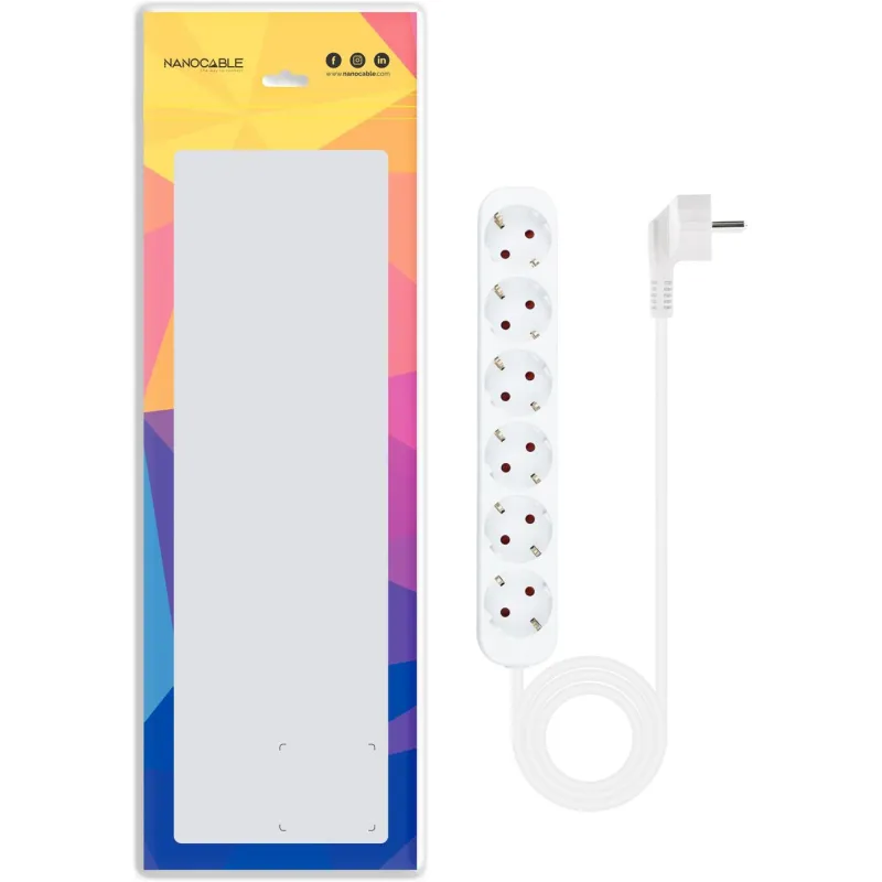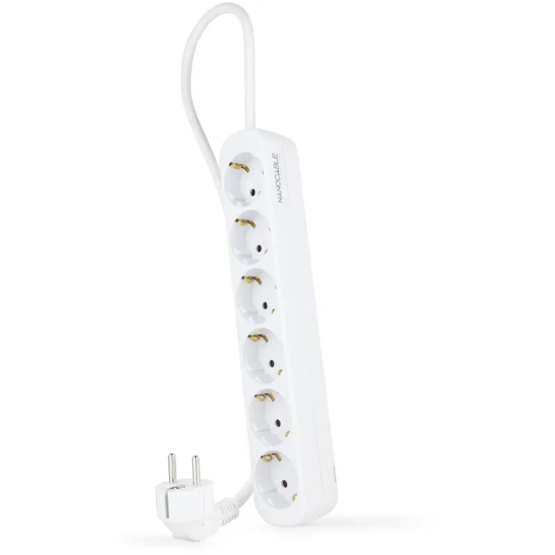 Nanocable 10.37.0006-NS Regleta de Enchufes con 6 Tomas Tipo F 1.4m Blanco