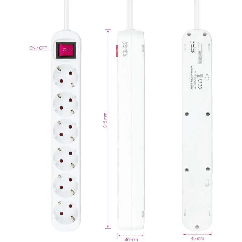 Nanocable 10.37.0006 Regleta 6 Tomas con Interruptor Blanca