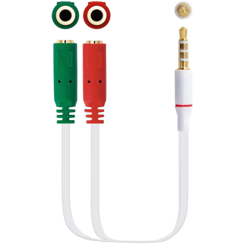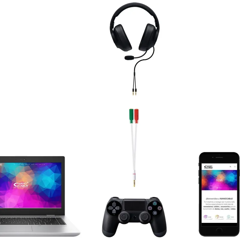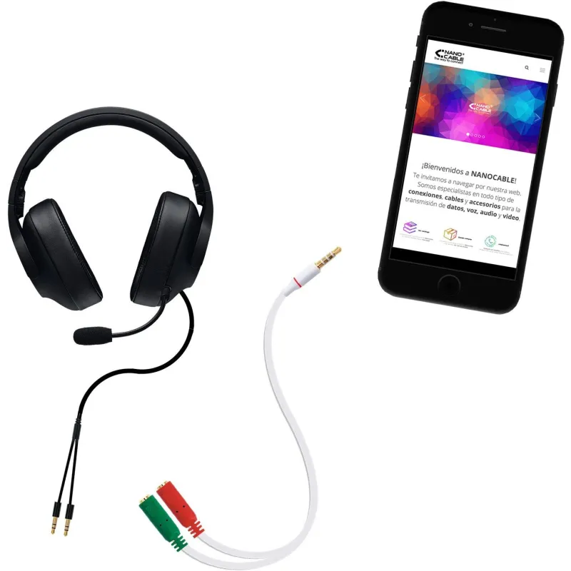 Este cable adaptador permite conectar auriculares y micrófono (headset) a cualquier dispositivo que disponga de un puerto de audio.