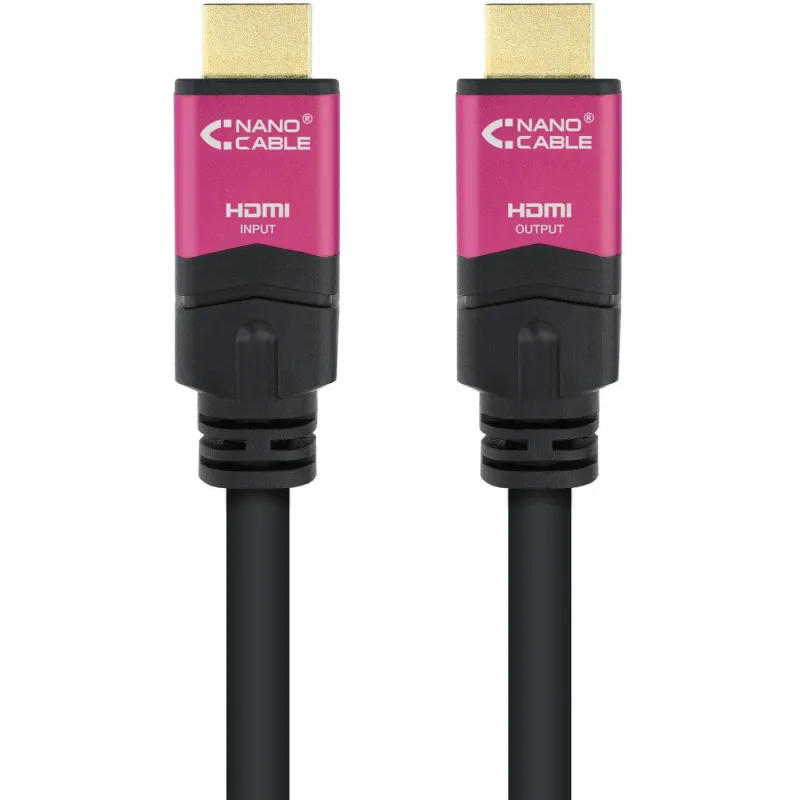 Nanocable 10.15.3730 Cable HDMI 2.0 4K@60Hz con Repetidor Conexión Macho a Macho con Longitud de 30 Metros Color Negro y Rosa