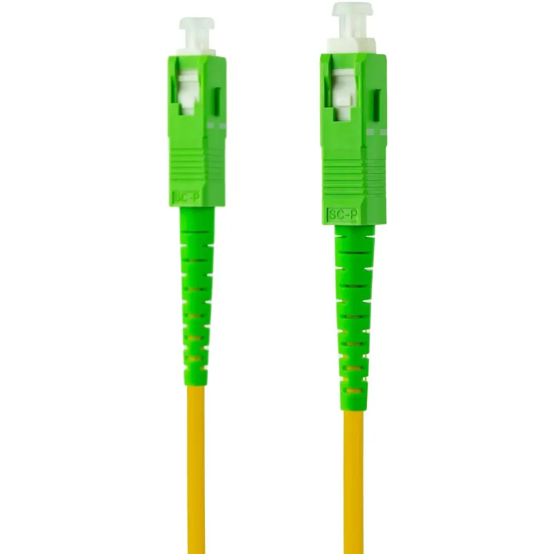DISEÑO RESISTENTE: Cada detalle de este cable refleja robustez, desde los conectores SC hasta el pulido APC que garantiza una conexión segura. Su distintivo color amarillo facilita su identificación entre otros cables. Con un diámetro de núcleo de 9 µm y una cubierta de 125 µm, este cable está diseñado para resistir y funcionar en los entornos más exigentes.