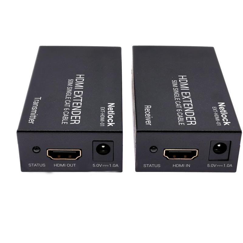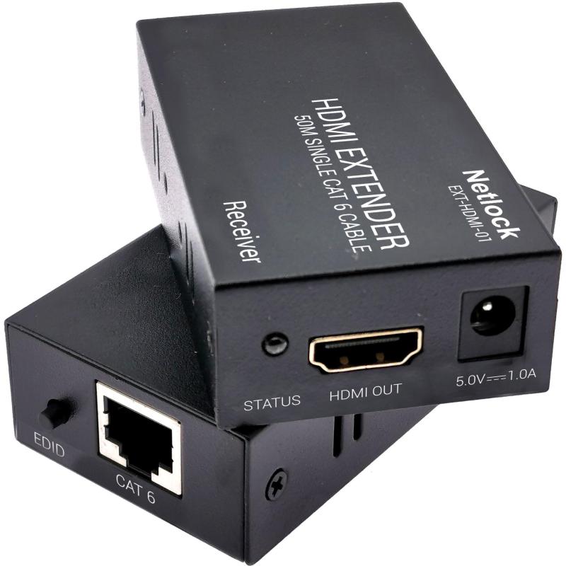 Extensor HDMI Netlock EXT-HDMI-01 por RJ-45 Cat.6 hasta 50 Metros, color Negro