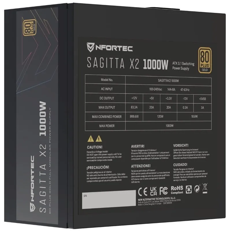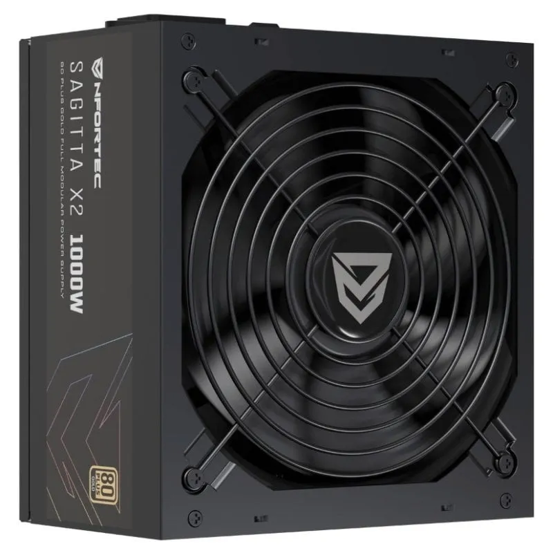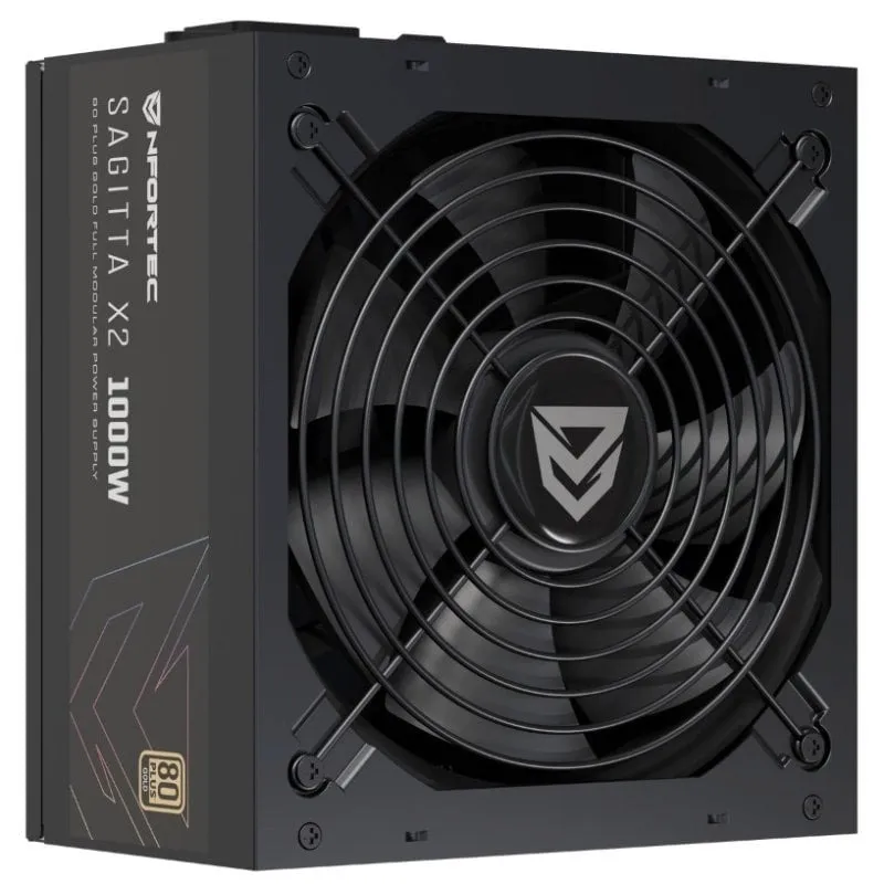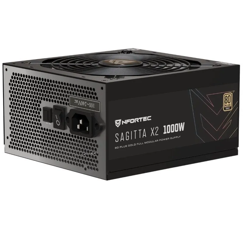 Nfortec Sagitta X2 1000W destaca por su eficiencia 80 Plus Gold, estándares actuales y cableado full modular listo para GPUs modernas.