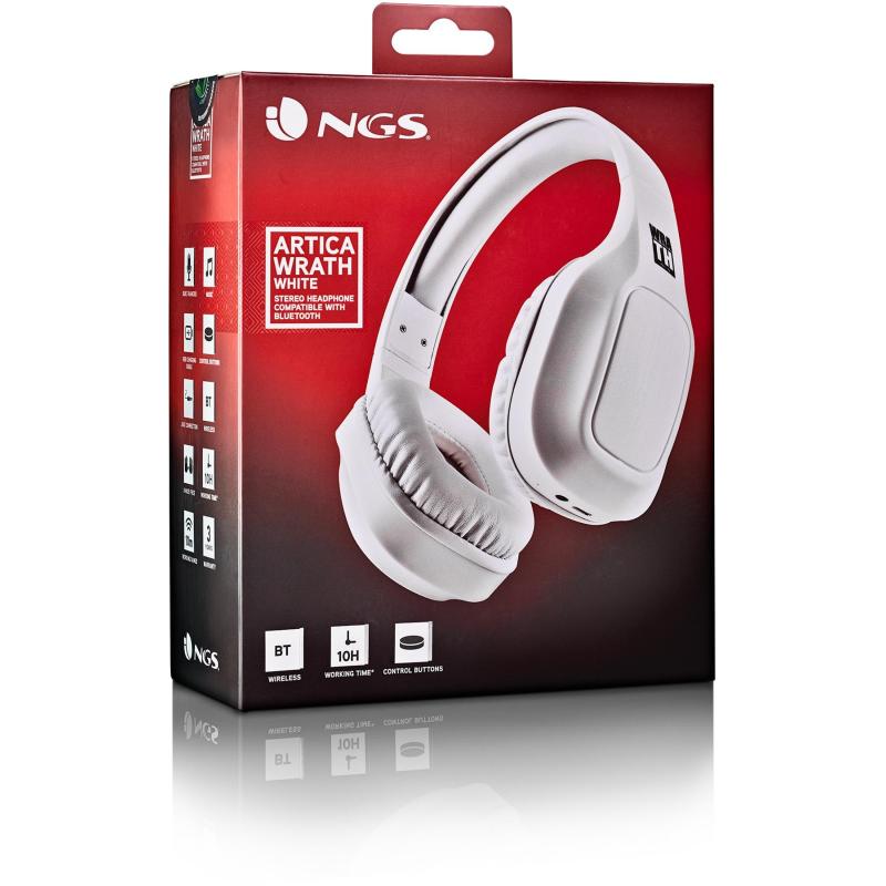 Auriculares NGS Artica Wrath White Inalámbricos por Bluetooth versión 5.0, en Diadema, con micrófono, color Blanco