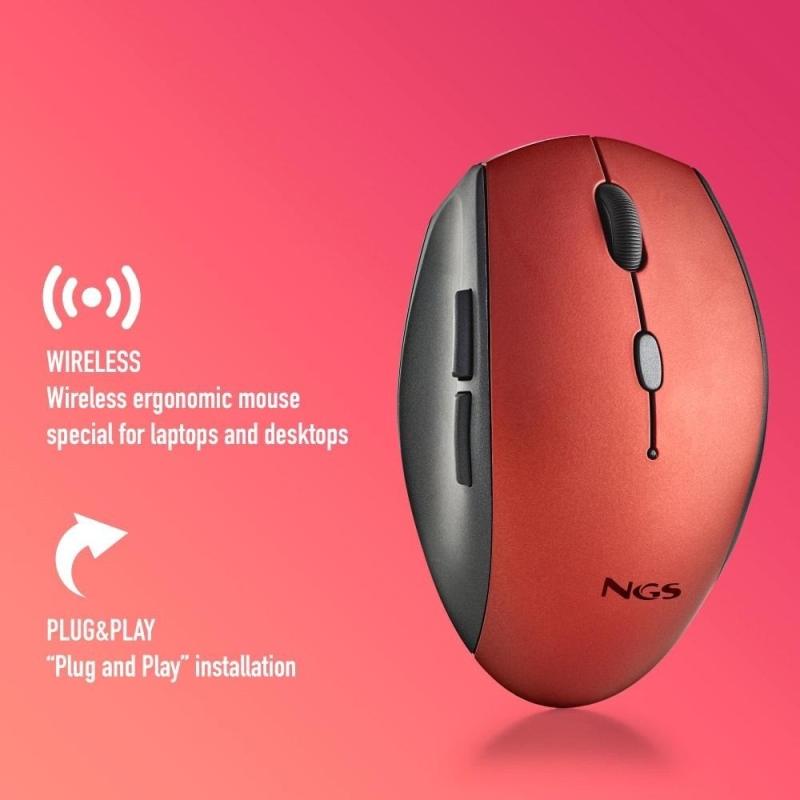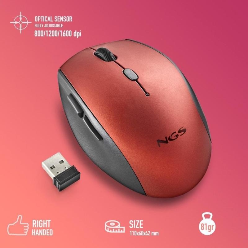 NGS BEERED Ratón Inalámbrico 1600DPI Rojo