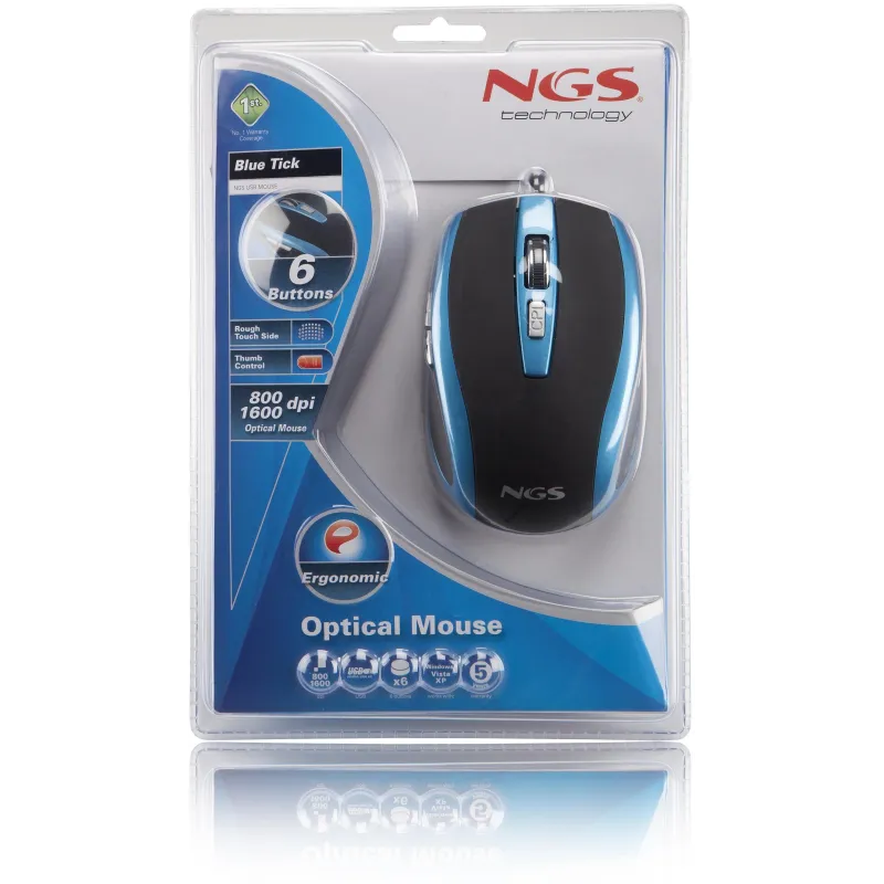 NGS BLUETICK Addict Ratón USB 1600DPI Azul