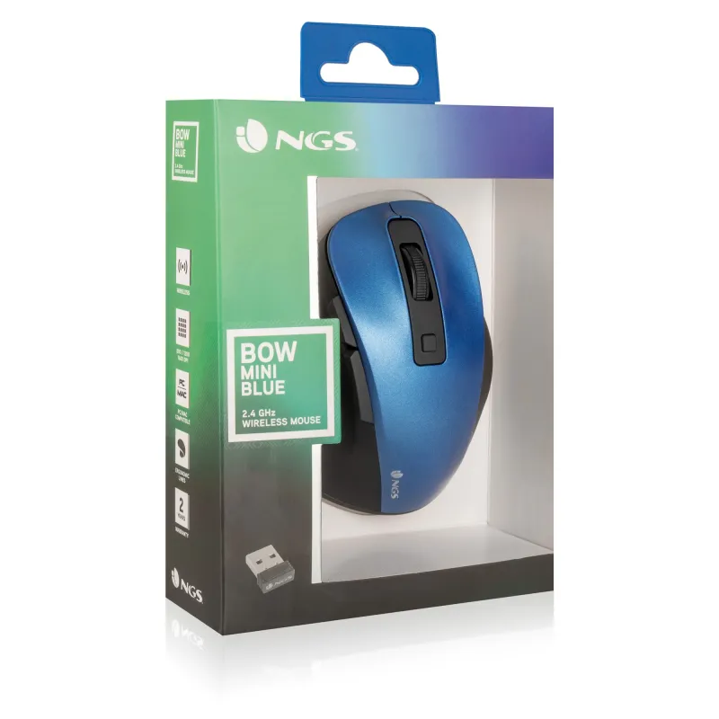 NGS Bow Mini Ratón Inalámbrico 1600DPI Azul