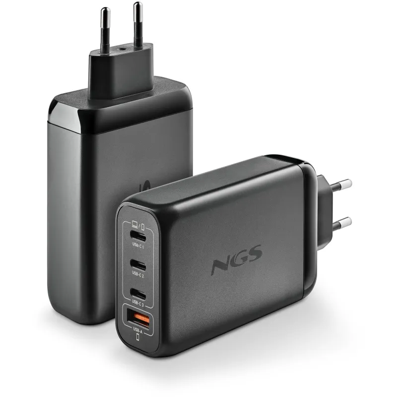 Cargador de Móvil NGS BUD140W con tecnología Quick Charge 3.0, potencia de salida 140 W y compatibilidad universal para 4 dispositivos