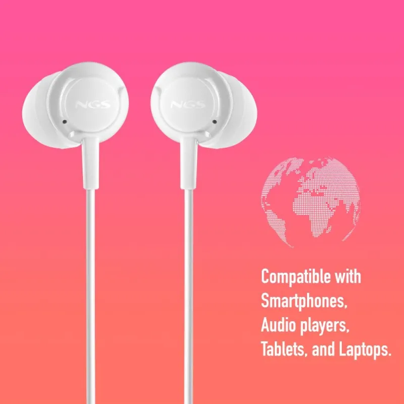 Auriculares NGS CROSS DRIFT WHITE con micrófono 3,5 mm Intraurales con botón multifunción, asistente de voz, cable 1,2 m, drivers 10 mm, 16 ? y 102 dB. HD.