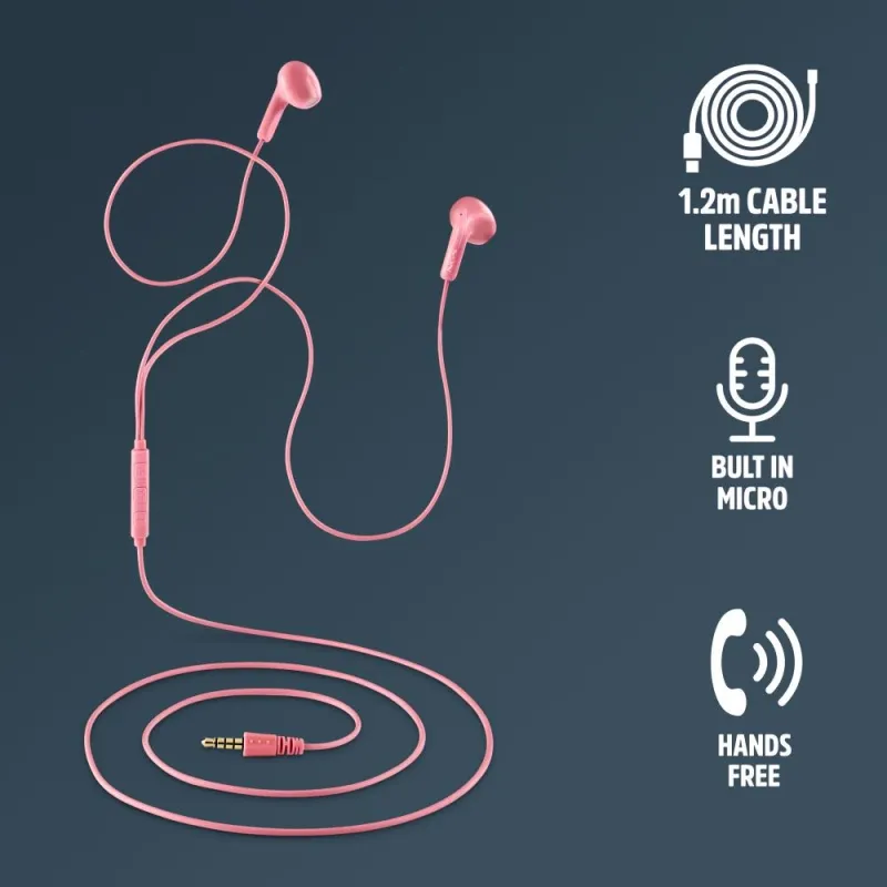 NGS Cross Flip Pink auriculares in-ear con Micrófono, Botón multifunción y control de volumen (jack 3,5 mm, cable 1,2 m)