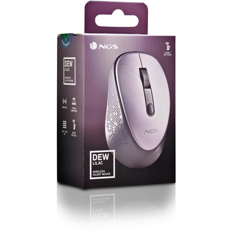 Ratón Inalámbrico NGS Dewlilac de 1600 DPI, con diseño ambidiestro y Acabado en Color Lila