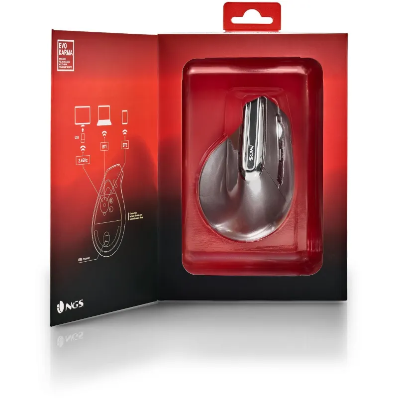 NGS Evo Karma Ratón Vertical Ergonómico Inalámbrico LED Multimodo 3200 DPI