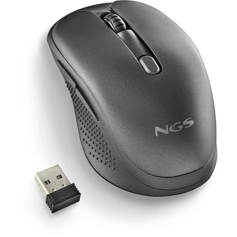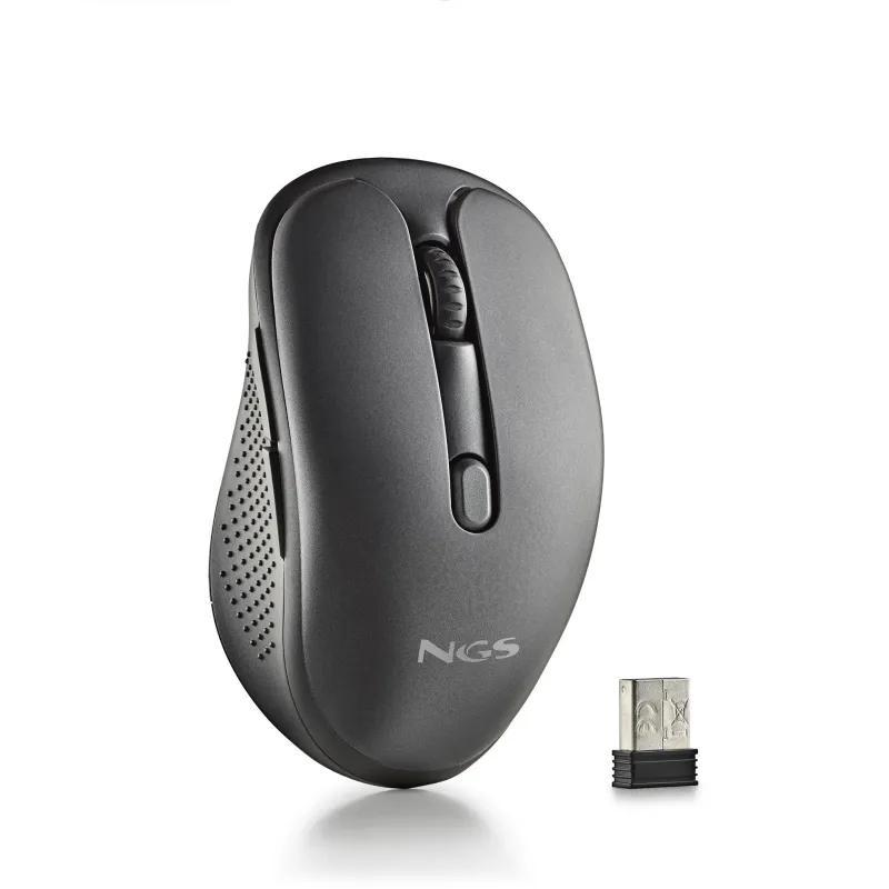 Ratón NGS Evo Rust Black con resolución de movimiento 1600 DPI, tecnología de detección óptica y diseño ergonómico inalámbrico