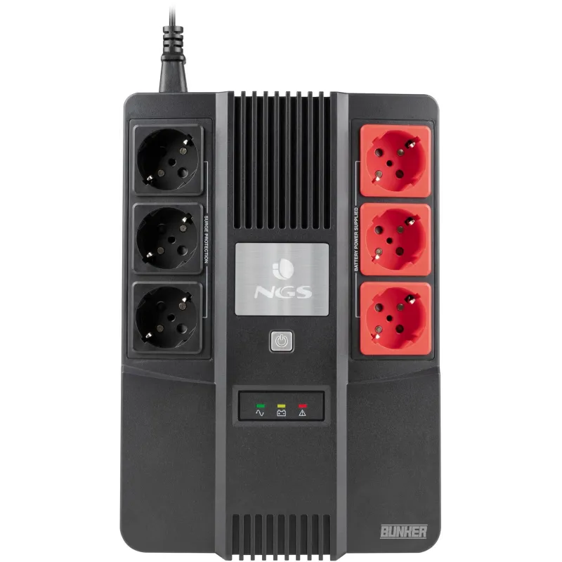 NGS Fortress Bunker, es un SAI (sistema de alimentación ininterrumpida) de 600VA (360W) con batería de 12V/7 incorporada que asegura protección eléctrica completa en entornos ofimáticos neutralizando las nefastas consecuencias de las sobrecargas en la red y variaciones de tensión.