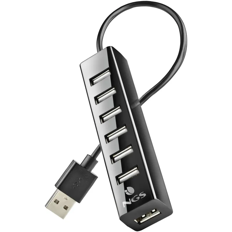 NGS iHUB7 Tiny HUB USB-A a USB-A 7 Puertos Negro