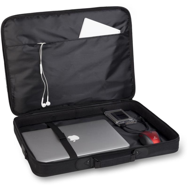 Con su asa de transporte y tirante para hombro ajustable y extraíble, podrás llevarlo cómodamente de la forma que prefieras. Sus funciones de protección contra el polvo y rayones garantizan que tus pertenencias permanezcan seguras en cualquier entorno. El cierre y el velcro aseguran un acceso rápido y sencillo a tus dispositivos y documentos. Las dimensiones del producto son: ancho de 430 mm, profundidad de 60 mm y altura de 320 mm. Combina perfectamente durabilidad y estilo, convirtiéndose en el accesorio imprescindible para el profesional moderno.