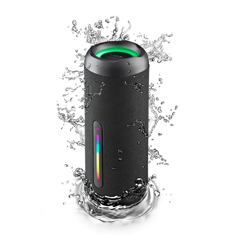 DISEÑO ELEGANTE Y FUNCIONAL: Presentando un diseño cilíndrico en un sofisticado color negro, este altavoz portátil estéreo no solo es estéticamente agradable, sino también altamente funcional. Los botones de control de volumen y el interruptor de encendido/apagado integrado hacen que su uso sea intuitivo y sencillo. Las funciones de protección contra el polvo, derrames y agua, con un código IPX7, aseguran durabilidad y resistencia en cualquier entorno.