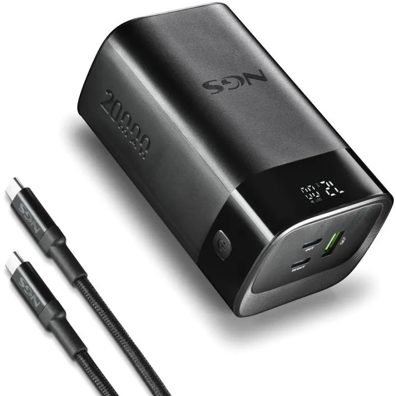 BATERÍA PORTÁTIL DE 65W: Esta potente batería externa de carga rápida cuenta con una salida de 65W PD 3.0, lo que la hace adecuada para cargar portátiles. También incluye otro puerto USB-C de carga rápida de hasta 20W para smartphones y tabletas, así como un puerto USB-A QC3.0 (18W) y SCP 22.5W.