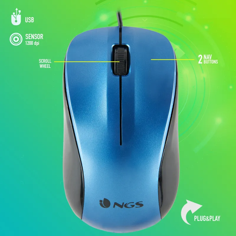 NGS Wired Crew Ratón Óptico 1200DPI Azul