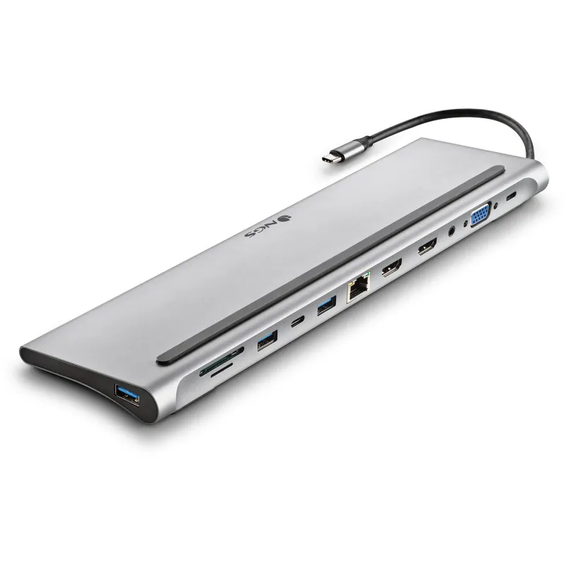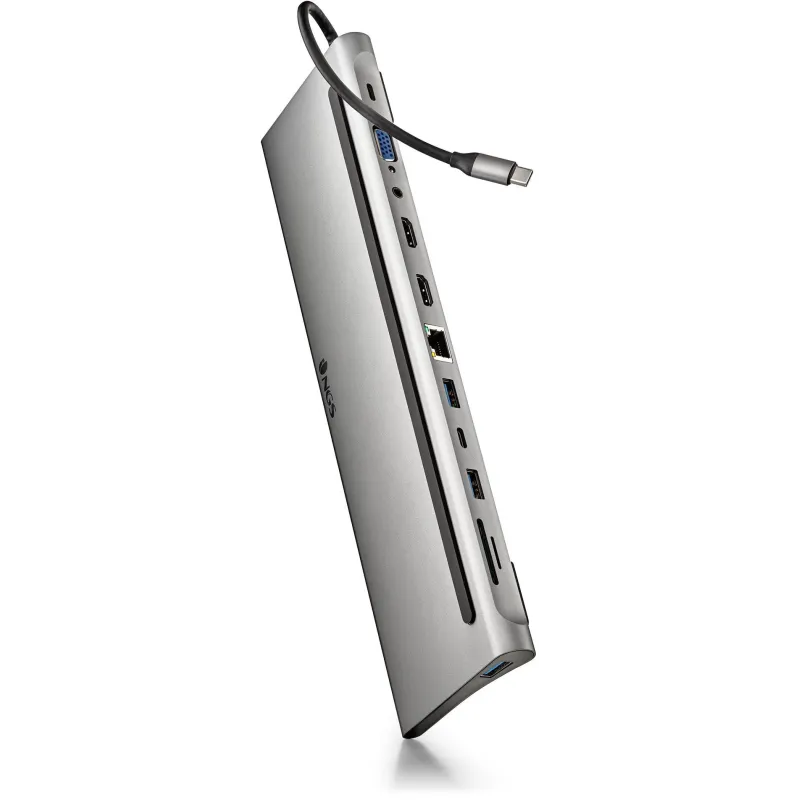 NGS Wonder Dock 12 HUB USB-C 3.0 a USB-A 3.0/USB-C 3.0/DisplayPort/VGA/HDMI/Jack 3.5 mm 12 Puertos 18 cm Plata