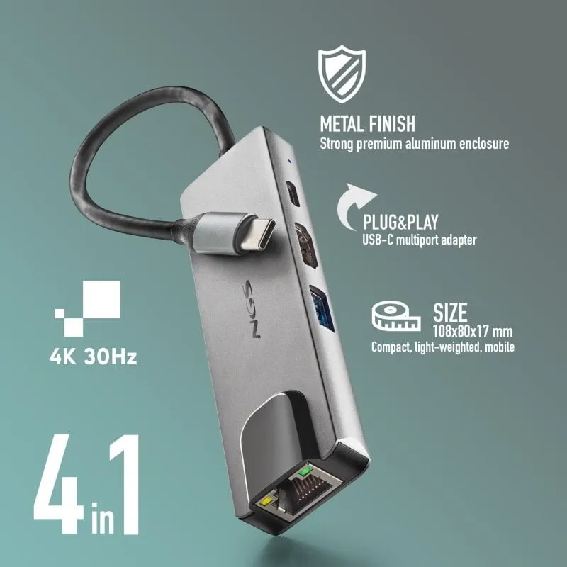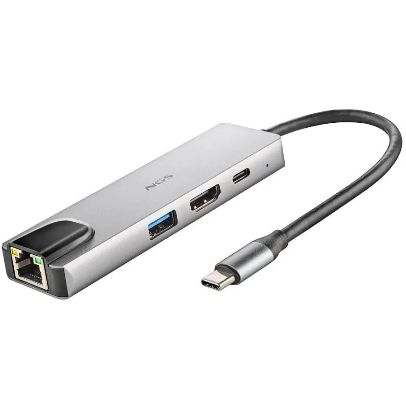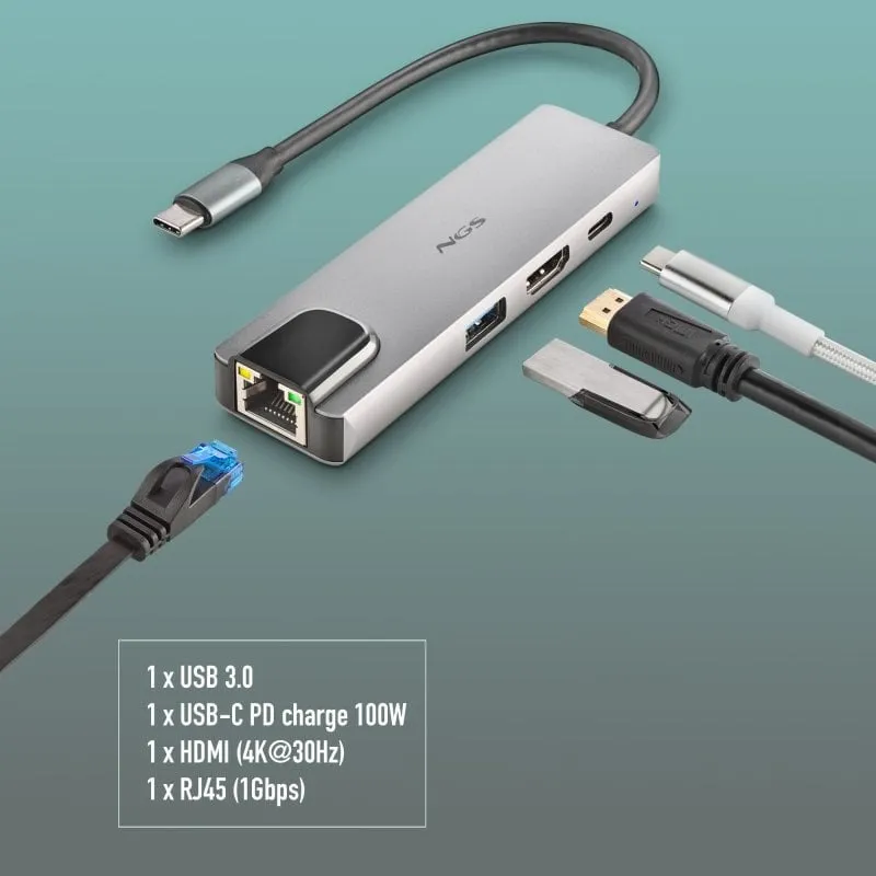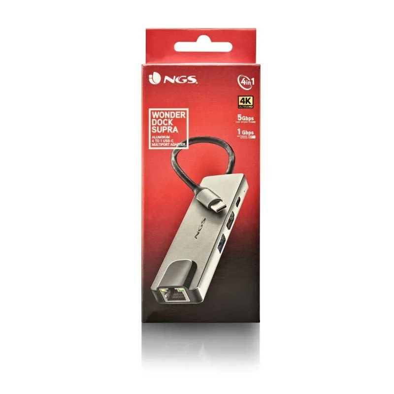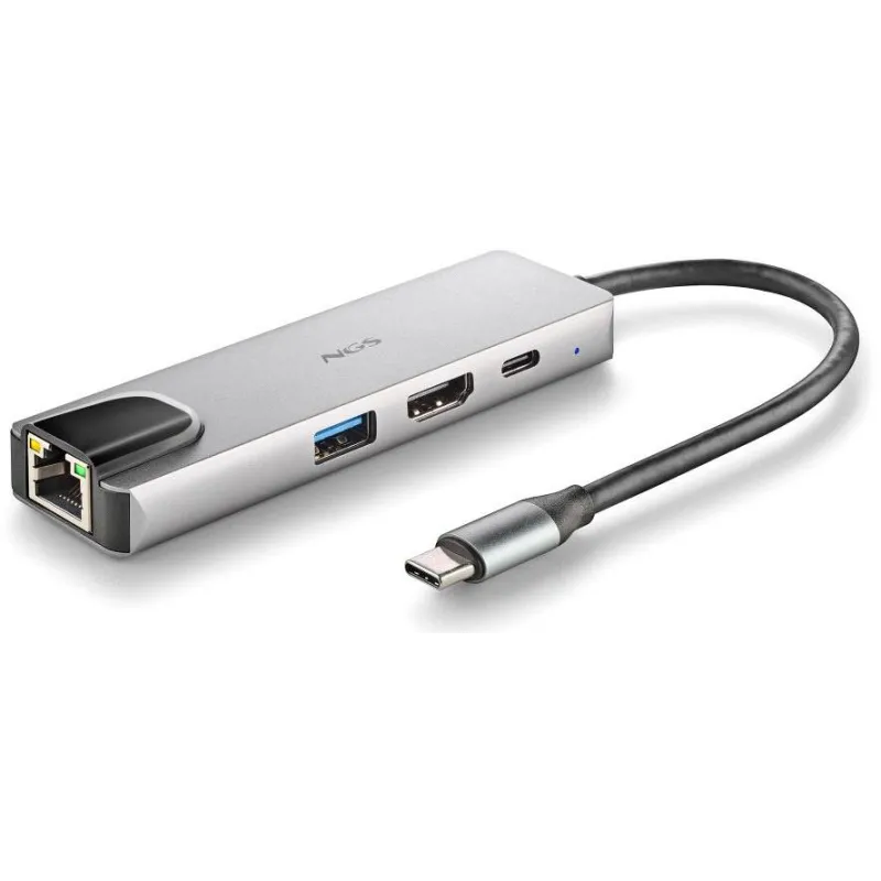 NGS Wonderdock Supra Adaptador HUB USB-C a 1x USB 3.0/1x USB-C PD 100W/1x HDMI 4K/1x RJ-45