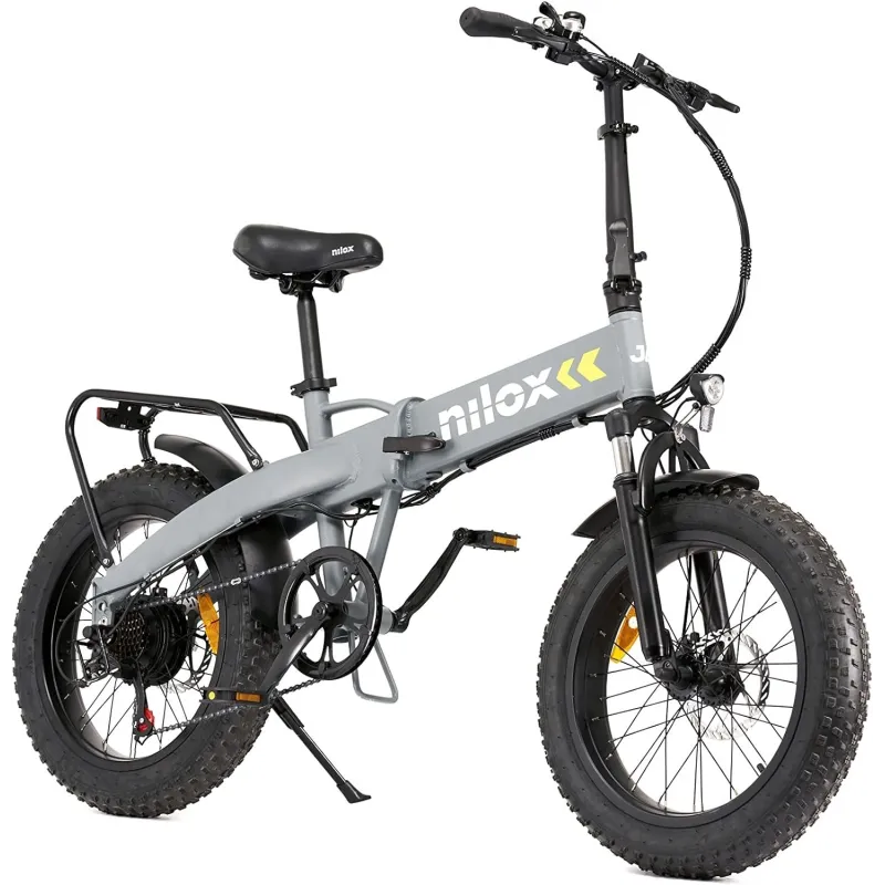 E-BIKE J4 PLUS: Embárcate en todo tipo de aventuras con Nilox J4 Plus. Descubre la nueva gama Nilox eBike Plus: ¡los modelos que te encantan, con un rendimiento mejorado! ¡La eBike se vuelve extrema! Una bicicleta eléctrica de pedaleo asistido que no conoce límites, gracias a la horquilla de suspensión delantera, las llantas FAT de 20" y el freno de doble disco. Potente y robusta también en su apariencia, la Nilox J4 Plus está equipada con una caja de cambios SHIMANO de 7 velocidades, un motor brushless High Speed ??de 36 V – 250 W y una batería extraíble de 36 V – 13 Ah integrada en el cuadro, recargable en tan solo 6 horas y te permitirá alcanzar los 25 km/h y recorrer en modo asistido hasta 70 km. Se caracteriza por un diseño audaz y moderno, como el marco plegable de aluminio, las potentes luces LED y la pantalla LCD que te permite elegir entre 5 modos de conducción, para sentirte a gusto tanto en caminos de tierra como en el centro de la ciudad. Nilox J4 Plus, el vehículo ideal para ir a cualquier parte y hacerte notar.