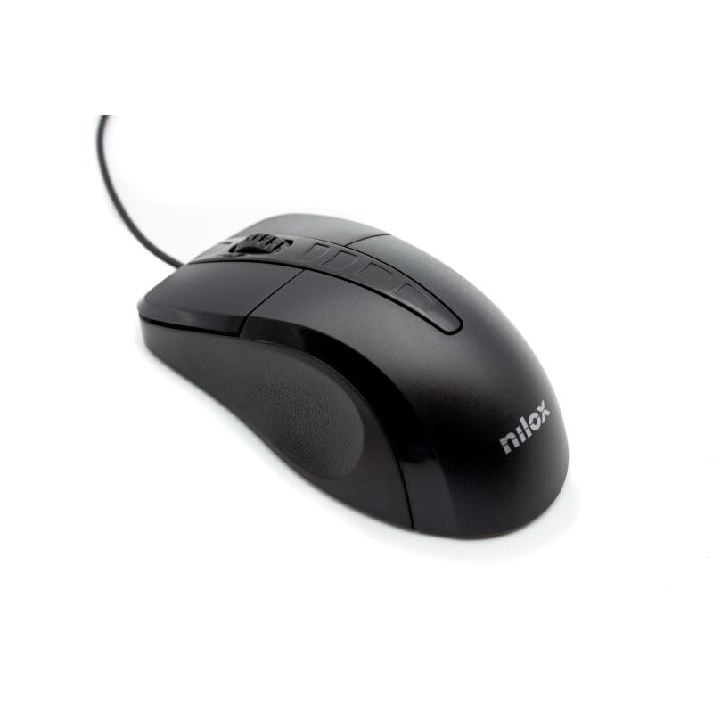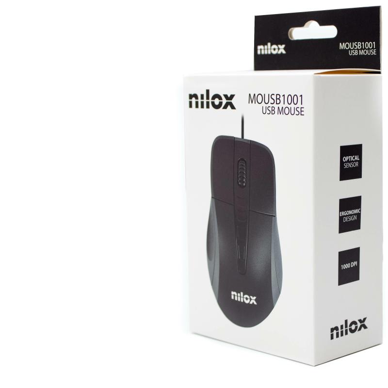 Ratón Nilox MOUSB1001 Óptico conexión alámbrica por USB 1000 de DPI máximo, color Negro