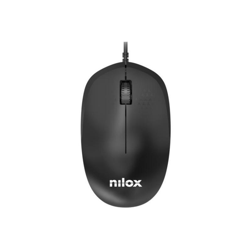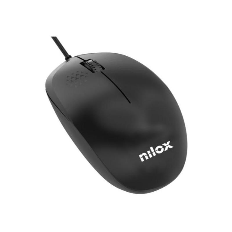 Ratón Nilox MOUSB1012 óptico con 1200 de DPI máximo, 3 botones, perfecto para oficina, conexión por USB-A alámbrica, color Negro