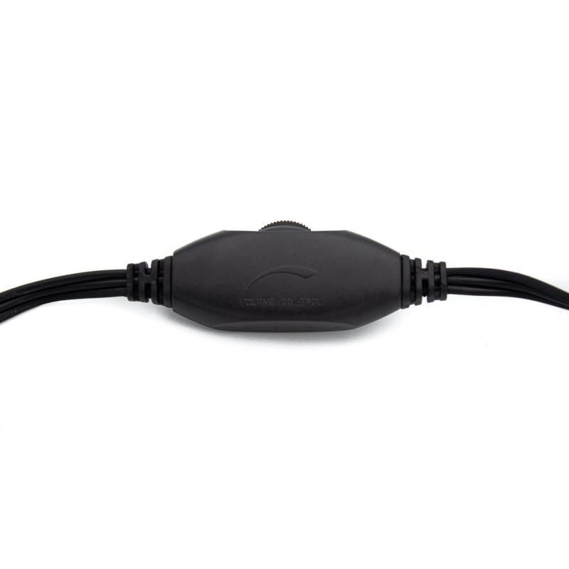 CONEXIÓN: 2 x Jack estéreo de 3.5 mm. Micrófono plegable y orientable con ajuste de volumen en el cable.