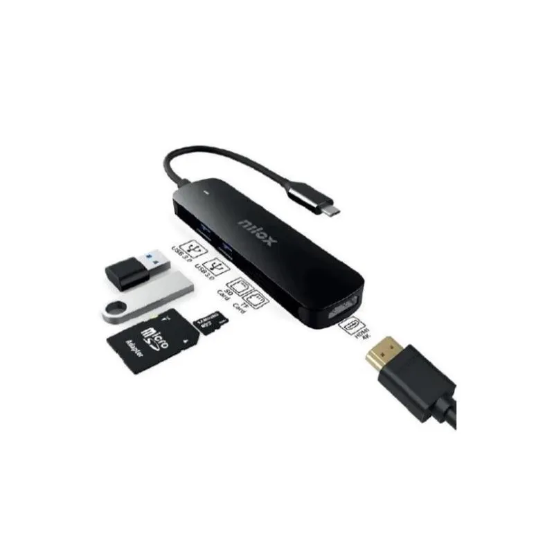 Nilox NXDSUSBC05 HUB USB-C a USB-A 3.0/HDMI/microSD/SD 5 Puertos Negro