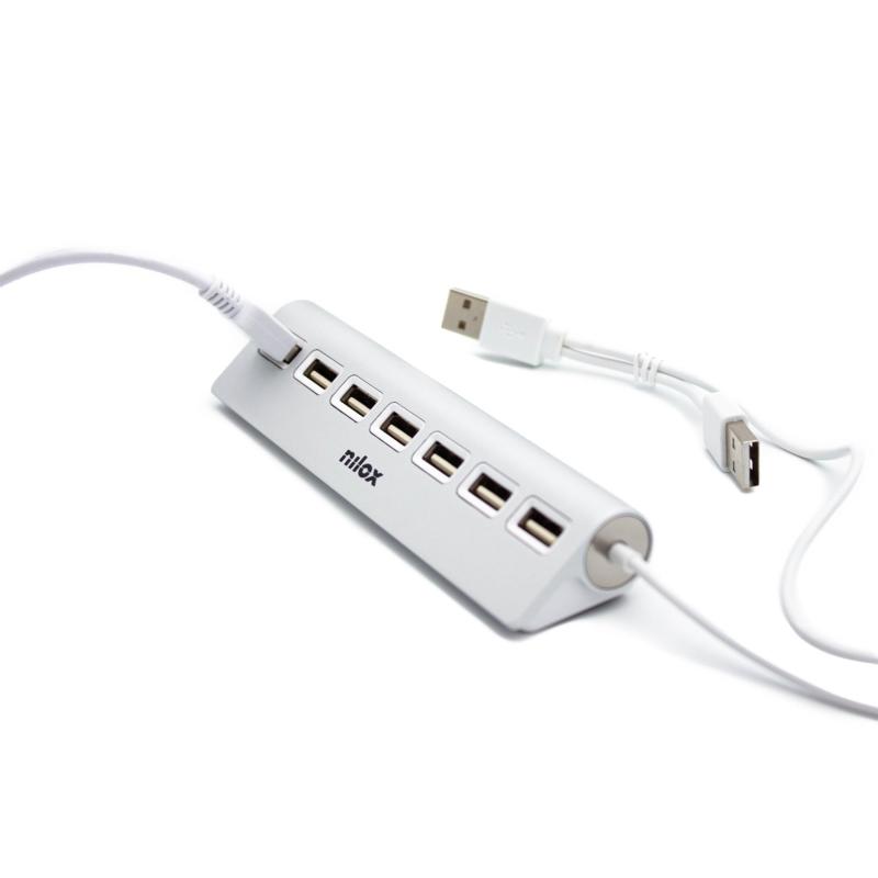 HUB Nilox NXHU7ALU2 conexión USB-A 2.0 a USB-A con 7 Puertos, color Blanco