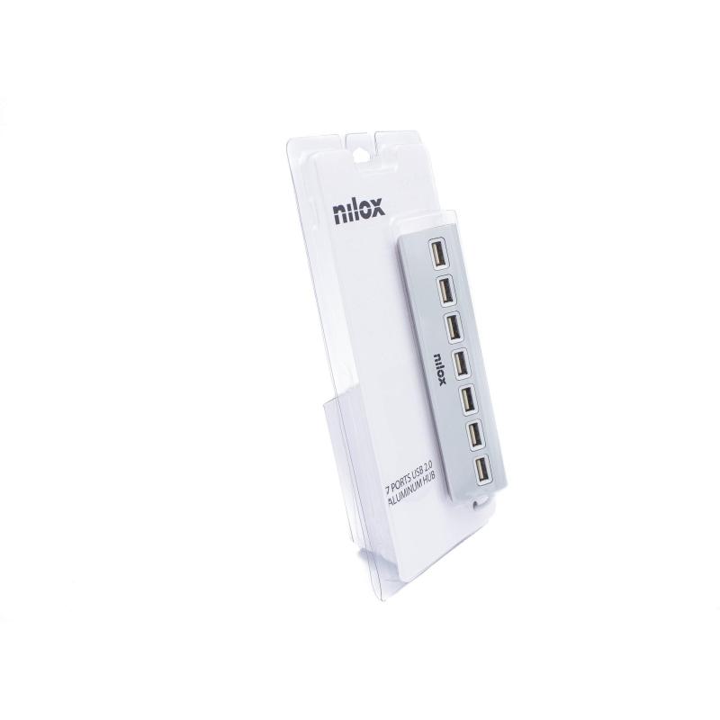 HUB Nilox NXHU7ALU2 conexión USB-A 2.0 a USB-A con 7 Puertos, transferencia de 480 Mbit/s, color Blanco