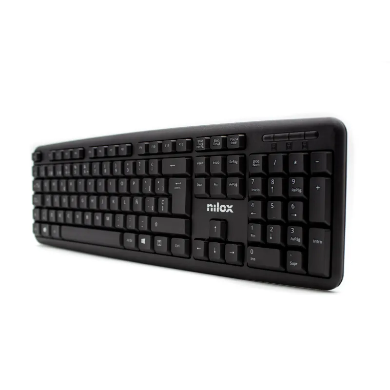Teclado Nilox NXKBE000002 Compacto USB-A, QWERTY Completo con 105 Teclas en Español de Membrana, Color Negro