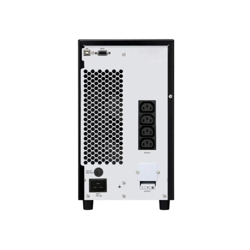 Equipada con una regulación automática de voltaje (AVR) y una eficiencia del 95%, esta UPS minimiza el consumo energético y ofrece una regulación del voltaje de salida del 2%, protegiendo tus equipos de picos de tensión. Su factor de potencia de entrada de 0,99 y nivel de ruido de 45 dB la convierten en una solución silenciosa y efectiva para entornos críticos.