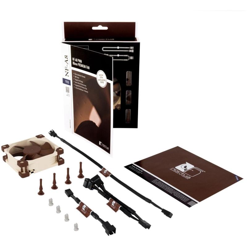 Ventilador Suplementario Noctua NF-A8 PWM silencioso ventilador de 8 cm 450-2200 RPM 55,5 m³/h y 150.000 h de vida útil con flujo de aire de 55,5 m³/h color marrón