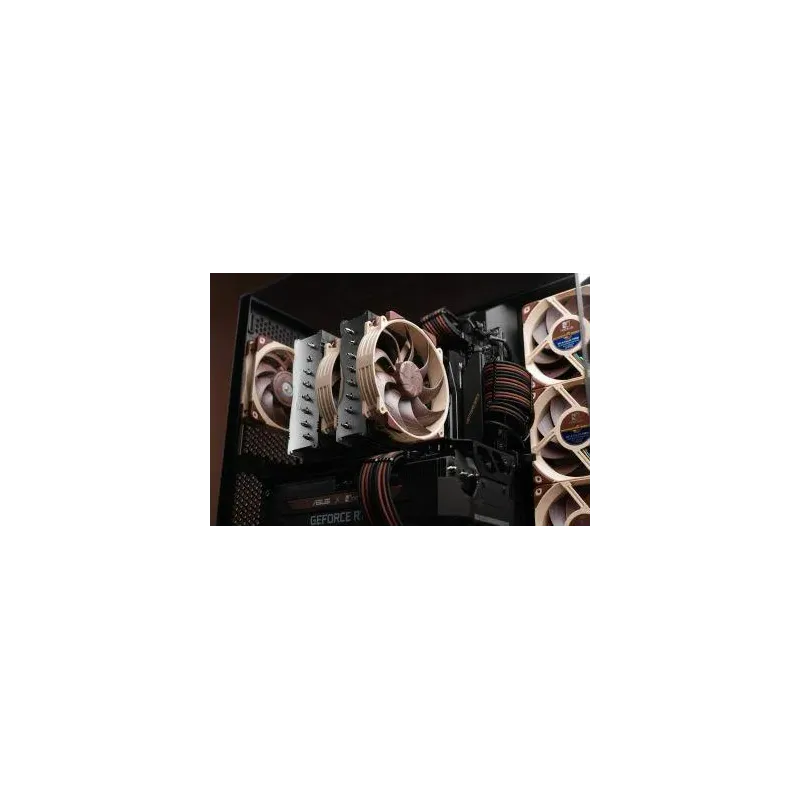 EXCELENTE ENFRIAMIENTO DE COMPONENTES: Extendiéndose por debajo de las pilas de aletas, los grandes ventiladores NF-A14x25r G2 no solo contribuyen a las excelentes capacidades de enfriamiento de la CPU del NH-D15 G2, sino que también proporcionan un flujo de aire masivo sobre los disipadores de calor de la placa base circundantes y componentes como los VRMs, asegurando así un excelente rendimiento de enfriamiento de componentes.