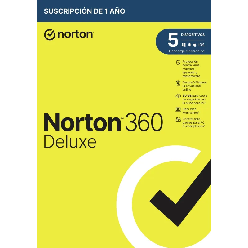 Norton 360 Deluxe 50GB ES 5 Dispositivos 1 Año + 3 Meses