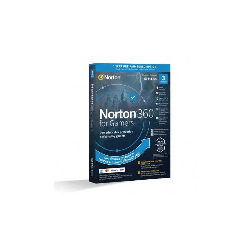 NORTON 360 PARA GAMERS: Protección potente. Diseñado para jugadores de PC, por jugadores de PC. Tanto si eres un jugador ocasional como si eres un jugador empedernido, Norton 360 para Gamers proporciona múltiples capas de protección para tus dispositivos, cuentas de juegos y activos digitales.