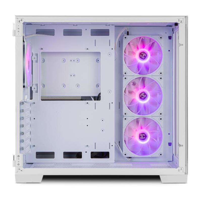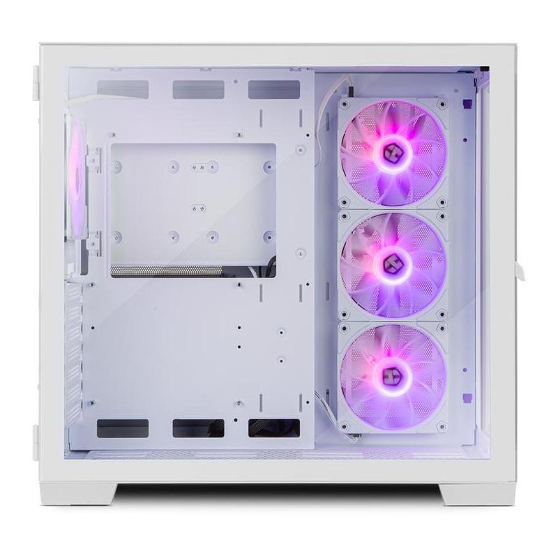 El gabinete para PC en color blanco ofrece un diseño elegante y moderno, fabricado con acero y vidrio templado. Compatible con tarjetas madre de factores de forma ATX, ITX y micro ATX, este gabinete tipo Midi Tower es perfecto para entusiastas del juego. Cuenta con ventana lateral y paneles de vidrio templado que permiten una vista clara de los componentes internos.