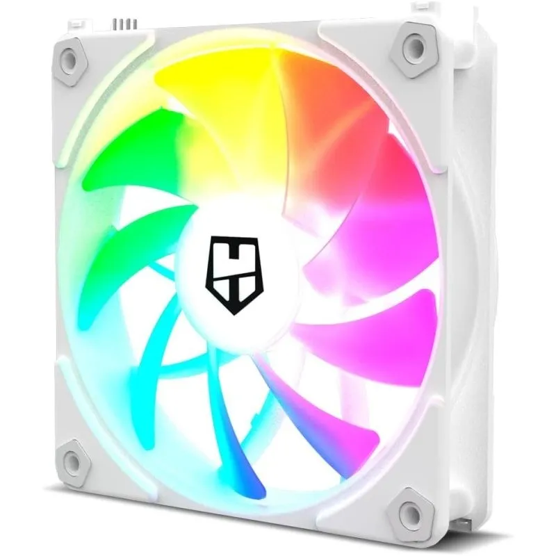 DISEÑO QUE CAUTIVA: El color blanco del producto le confiere una elegancia y sofisticación inigualables. Con 9 aspas de ventilador, este dispositivo también cuenta con iluminación LED multicolor, que se conecta a través de un conector LED de 3 pines. El ventilador se conecta a través de un conector de 4 pines.